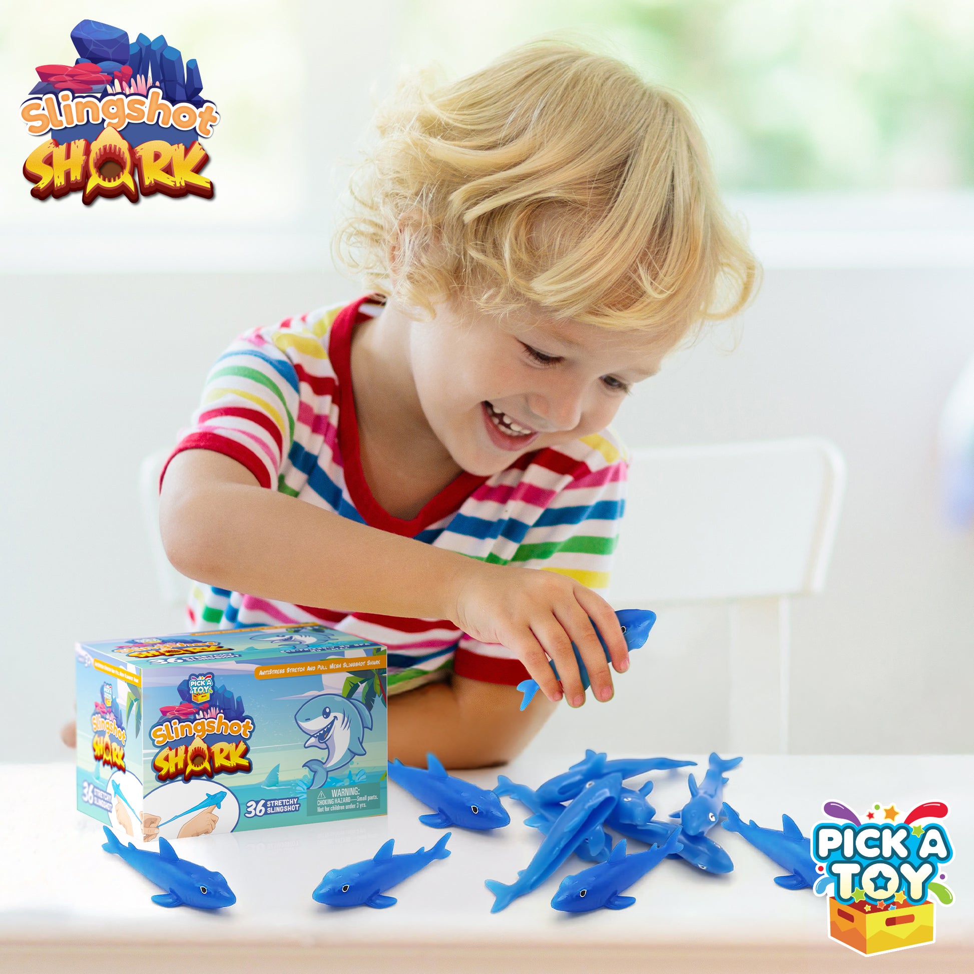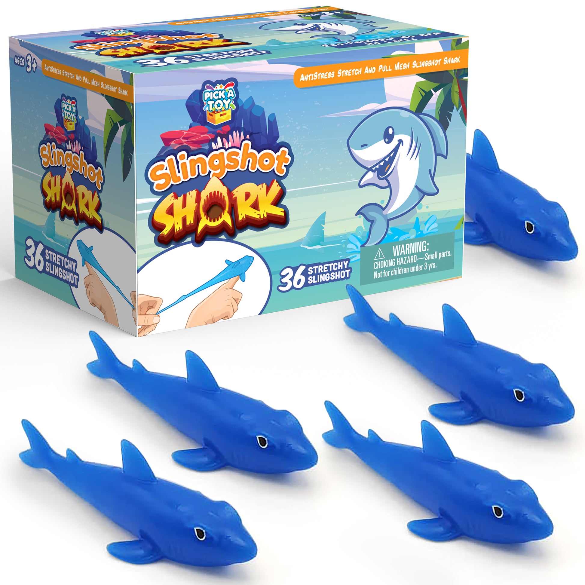 PICK A TOY 36 Pcs Shark Party Favors Stretchy Slingshot Toys, Easter Egg Fillers, Birthday Goodie Bags Stuffers, Sea Animal Party Decorations, Fish Shooter Game Finger Flicker